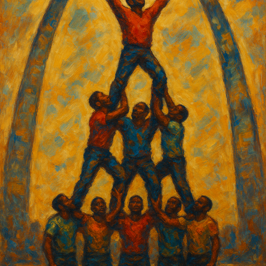 “This painting represents more than strength — it’s a vision of unity. The Arch stands as a symbol of St. Louis, but here it becomes a gateway to a higher purpose. Each man in the pyramid lifts not only himself but his brother, showing that real elevation comes from collaboration, not competition.”